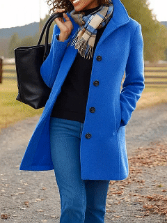 Featuring clean lines, a stand-up collar, and a structured silhouette, it delivers elegance whether you’re headed to the office, shopping, or out for dinner.